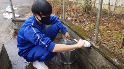 辛いはずの作業も笑顔で取り組む3年生の様子は、「立つ鳥 あとを濁さず」を超え、「立つ鳥 心を残す」といったところです。