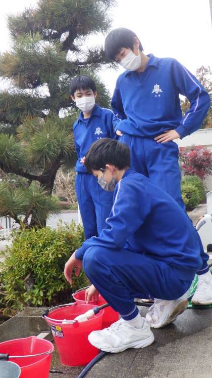 辛いはずの作業も笑顔で取り組む3年生の様子は、「立つ鳥 あとを濁さず」を超え、「立つ鳥 心を残す」といったところです。