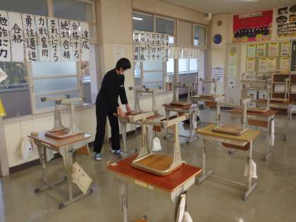 毎日、バス通学の男子生徒1名が教室には一番乗りで登校してきます。ただ、昨日は『愛校活動』だったため、3年生の教室は朝の時点で何もない状態です。