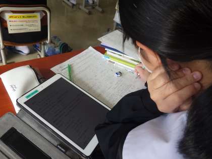3年間の総復習ということで、プリントやタブレットの問題を解いていました。自身の苦手な分野を選択し、弱点の克服です。