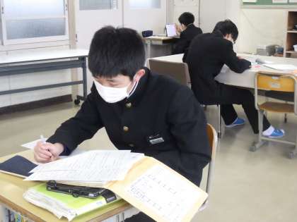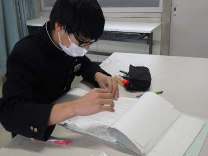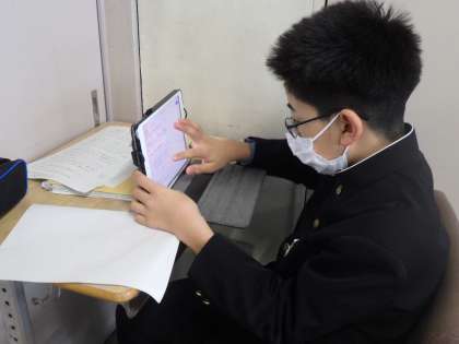 学年末テストが返却され、問題の解き直しに取り組んでいました。学習してきたプリントや学習用タブレットから見つけ出し、その時どんなことを学んだかも振り返りながら、正解を導き出すヒントを探していました。今後のテストにも役立つよう、学習の仕方も身につけていってほしいと思います。