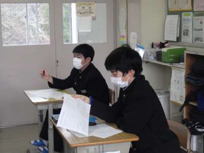 学年末テストが返却され、正しい答えの書き方、正確に早く解くための方法などが改めて説明されていました。