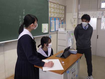 年間の活動の反省を終えたあとも、全校生徒の日常の学校生活が充実したものになるよう話し合いが進められていました。今回も、今年の学校スローガンである『凡事徹底』を推進できるよう、具体的な取り組み内容をポスターにかき込んでいました。常に生徒の快適な学校生活をテーマに活動を進めてきた代表委員会。心から感謝したいと思います。
