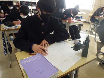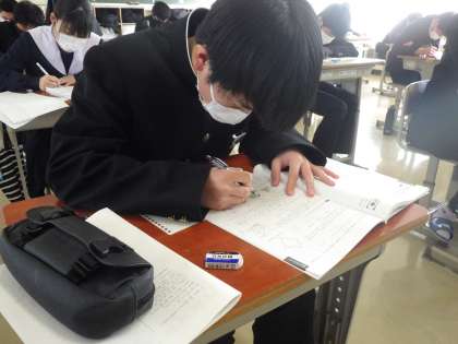 入試に向けての弱点補強に取り組んでいました。テキストや問題集をやり込んでいます。かつて提出するために取り組んでいた頃が懐かしいと思えるほど、自分の実力をアップさせようと一生懸命取り組んでいる様子に感心しました。