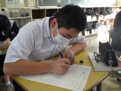 入試に向けての弱点補強に取り組んでいました。テキストや問題集をやり込んでいます。かつて提出するために取り組んでいた頃が懐かしいと思えるほど、自分の実力をアップさせようと一生懸命取り組んでいる様子に感心しました。
