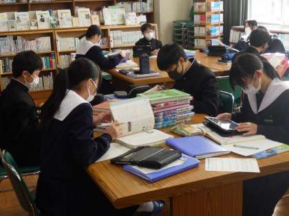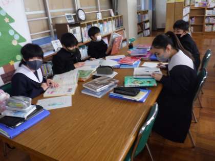 今年度のすべてのテストを終え、今日から新しい取組の授業が始まりました。各自が持っている社会科に関する疑問について探究していくものです。全員共通のテーマであれば、タブレットなどを活用すればおおよその解決はできますが、今回はあえて百科事典を活用して、調べたい内容を絞っていくところからスタートです。いくつもの疑問を書き出し、その中から参考になるページに印をつけていきます。いつもと目つきが違うように感じました。