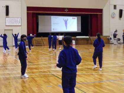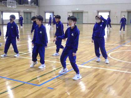 映像を見ながら頑張って踊っていても、どうしてもうまくいかない時が出てきます。そんな状況が今日の授業の途中で起きました。しかし、教科担任からの指導が入り、生徒たちはやる気を復活させました。