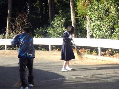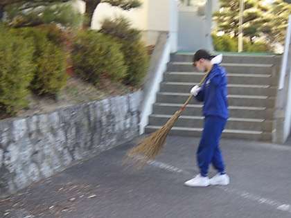 3年生の生徒たちが始めた朝のボランティア清掃。今日も正門付近、メインの駐車場、あいさつの坂道など、至る場所の清掃に取り組んでくれています。