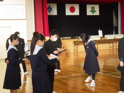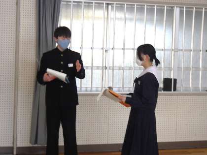 1・2年生が祝う会で披露する群読。今朝もその練習が行われていました。