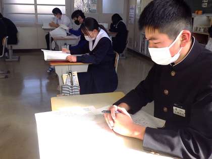 いかに早く正確な答えを導き出すか…。教科担任の解説も一生懸命聞いていました。