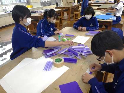 装飾担当の2年生が集まり、今後の作業の準備に取り組んでいました。