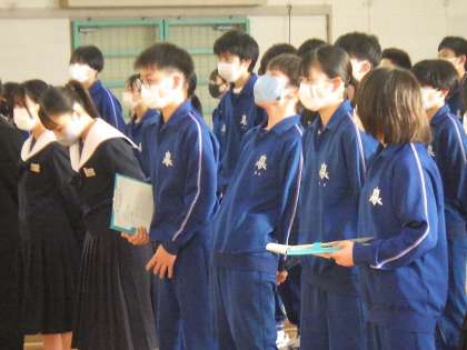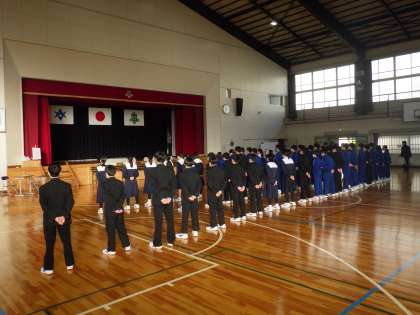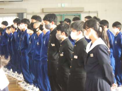 始業前に体育館で行われた「祝う会 朝の群読練習」の様子です。