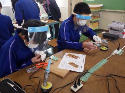 セパレート・トーチの製品づくりに取り組んでいました。設計図をよく見て、取り付けるべき細かな部品を確認していきます。はんだごてやニッパー、ラジオペンチ、ドライバーなど、使用する道具も増えてきて、その使い方も様になってきています。
