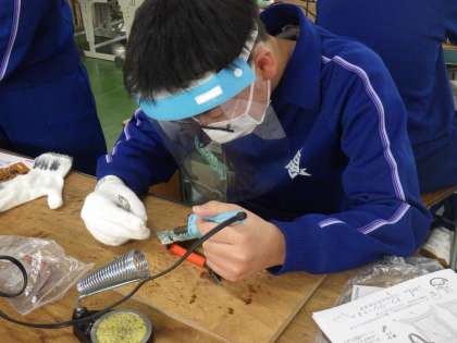 セパレート・トーチの製品づくりに取り組んでいました。設計図をよく見て、取り付けるべき細かな部品を確認していきます。はんだごてやニッパー、ラジオペンチ、ドライバーなど、使用する道具も増えてきて、その使い方も様になってきています。