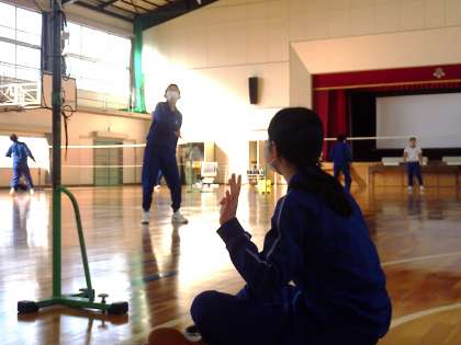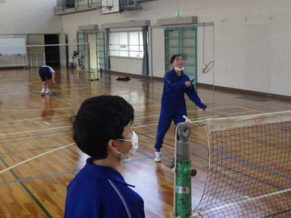 3年生の体育の授業・バドミントンの様子です。