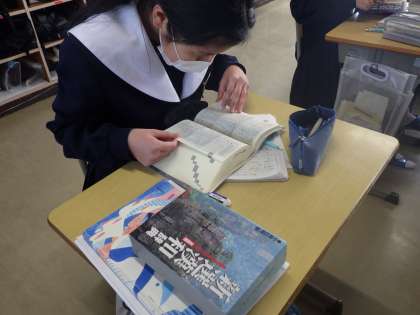 漢字の成り立ちについて学んでいました。漢和辞典の効果的な活用の仕方も一緒に学んでいました。