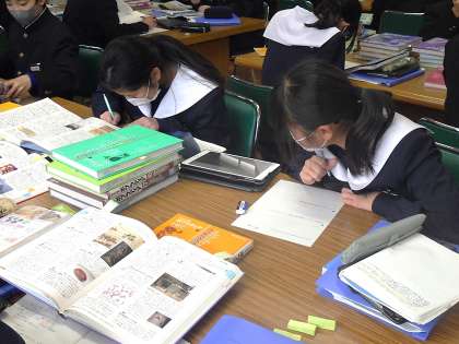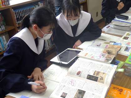 図書館での調べ学習が行われていました。課題は以下の2つです。