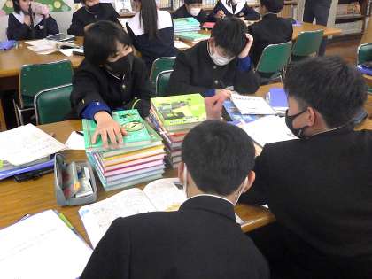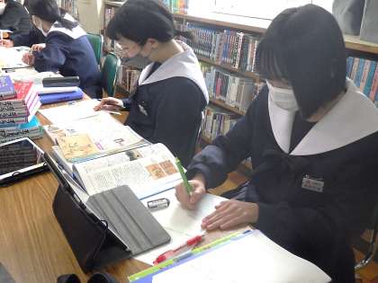 図書館での調べ学習が行われていました。課題は以下の2つです。