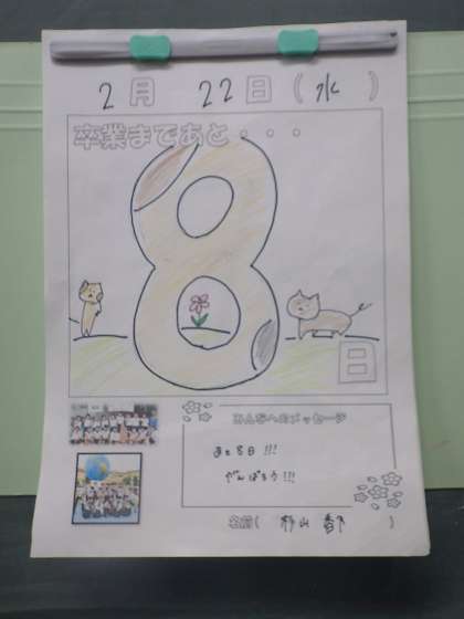 3年生の教室に掲示されている「卒業までのカウントダウンカレンダー」。