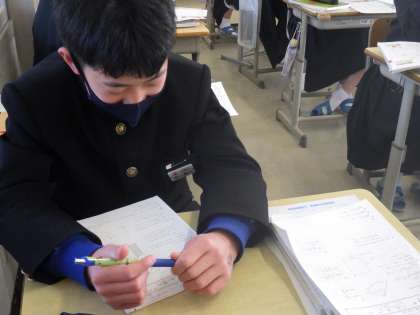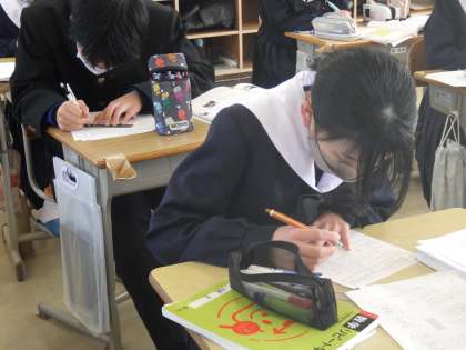 一年間の総復習として、各単元のまとめのプリントなどに取り組んでいました。理解が十分ではないところは、すぐに仲間に聞いて解決していました。また、同じペースでプリントを進めていくことで、やる気が持続しているようでした。