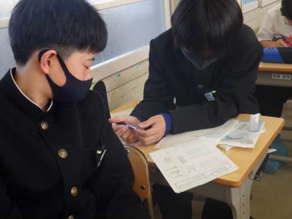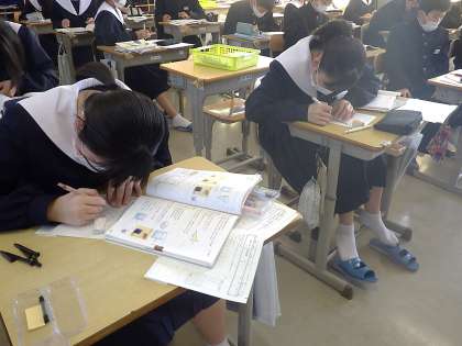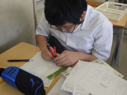 一年間の総復習として、各単元のまとめのプリントなどに取り組んでいました。理解が十分ではないところは、すぐに仲間に聞いて解決していました。また、同じペースでプリントを進めていくことで、やる気が持続しているようでした。