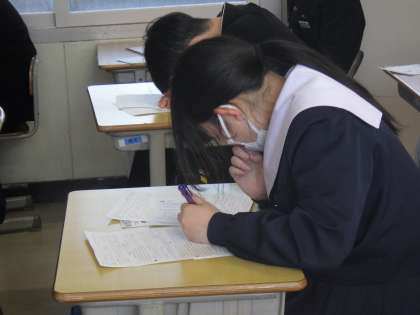 先日行われた単元テストが返却され、解説が行われていました。解説を聞けば納得のものもあれば、聞いても「?」のものもあったようです。しっかりと復習し、今後の学習につなげてほしいと思います。