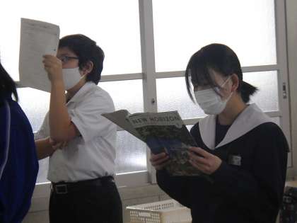 人やものの存在を表す表現の仕方について学んでいました。プリントや教科書を何度も読み、基本となる文をしっかり覚えていきます。
