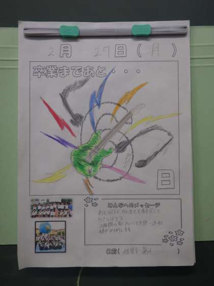 3年生の教室に掲示されている「卒業までのカウントダウンカレンダー」。