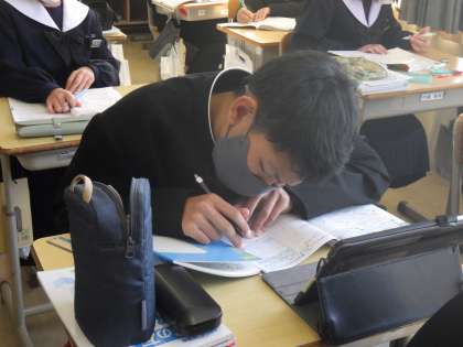 年間の総復習に取り組んでいました。単元別のプリント、問題集、学習用タブレットなど、活用しているものもさまざま。しっかりと苦手部分を克服しておいてほしいと思います。