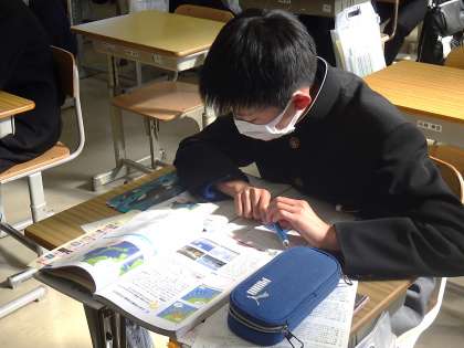 「日本の気象」という単元のまとめでしたが、教科書には “SDGs” について考える課題が提示されていました。目標となる2030年は、今から7年後。生徒たちは大学を卒業するころの年齢になっています。今どのような状況なのか、目標達成の期限までに自分たちにできることは何かなどを考えていました。