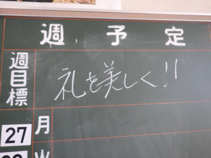 教室の背面黒板に掲げられた今週の目標は、やっぱり卒業式に向けてのものでした。明後日の水曜日に「卒業を祝う会」というお楽しみ行事が終了すると、いよいよ卒業式練習に入ります。授業中はもちろん、日頃の生活でも意識していってほしいと思います。