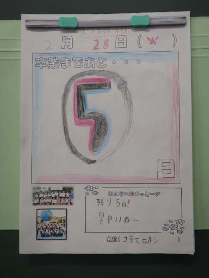3年生の教室に掲示されている「卒業までのカウントダウンカレンダー」。