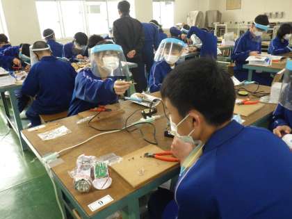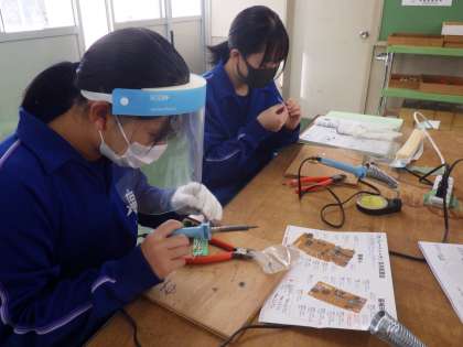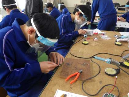 電子回路の部品を組み立てていく「セパレートトーチ」の製作に取り組んでいました。細かな部品を間違えないようにはんだで接着していきます。
