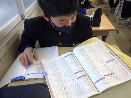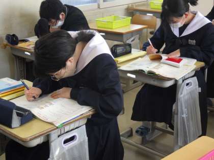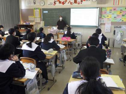 「レストランでの注文の表現を学ぼう」を課題に、学習が進められていました。実用的な内容に生徒も意欲が増しています。