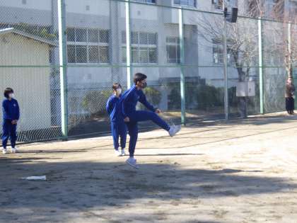 卒業関連行事で体育館の使用ができないため、この時期は天気が良ければ屋外での種目を学んでいます。