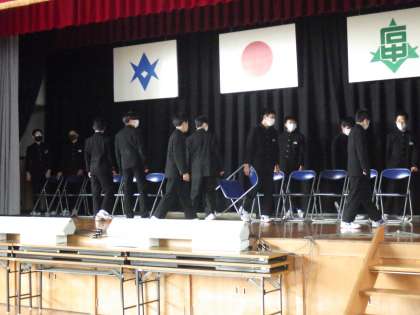 1・2年生は最終準備に取り組んでいます。登校した生徒たちが続々と体育館に集まり、自分たちで活動すべきことを見つけて、動き出していました