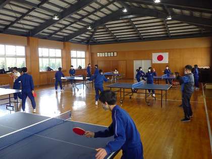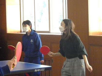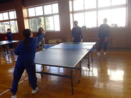 3人グレープを作り、総当たりの対戦です。勝てば奥の卓球台、負けると手前の卓球台へと移動が決まります。楽しみながらも、真剣にゲームに臨んでいました。