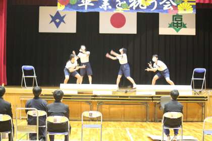 いよいよ3年生が入場です。グループでの入場パフォーマンスを披露しています。