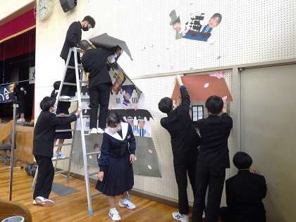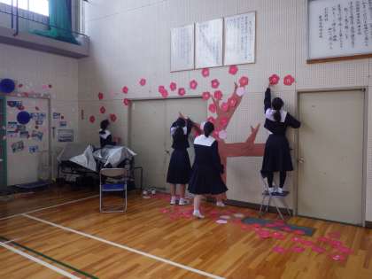 限られた時間の中で、卒業を祝う会の準備・練習に取り組んできた1・2年生。会の終了後も全員が自分で活動内容を見つけて、片付け作業を行っていました。