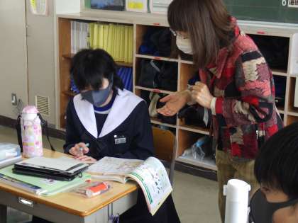 「栄養バランスのよい夕食を考えよう」をテーマに学習が進められていました。主食・主菜・副菜・汁物・その他(デザートなど)を6つの食品群すべてが入るように意識して考えていきます。
