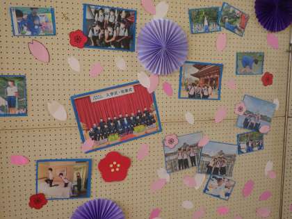 昨日の祝う会で会場一面に貼られていた3年生の思い出の写真(一部)。