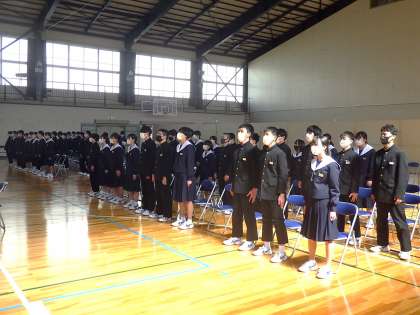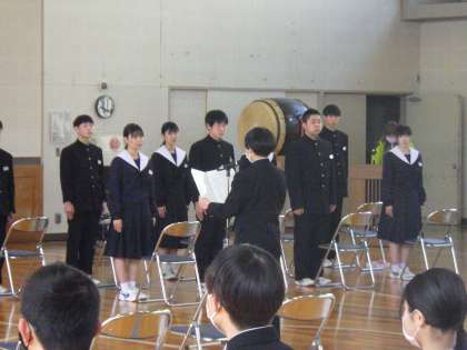 昨日の楽しい雰囲気での『卒業を祝う会』から気持ちを切り替えて、今日から、『卒業式』の全校練習が始まりました。生徒たちは良い緊張感をもって、練習に臨んでいるようでした。