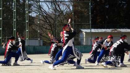 1・2年生が合同で石中ソーランの練習に励んでいました。