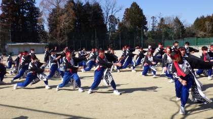 1・2年生が合同で石中ソーランの練習に励んでいました。
