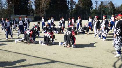 練習開始から全力で取り組んでいるため、筋肉痛に悩まされていた生徒たち。しかし、法被を着ると新たな力がみなぎってくるのか、練習のレベルが数段上がります。