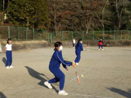 昨日より再開した平日の帰りの部活動。女子ソフトテニス部の活動の様子です。