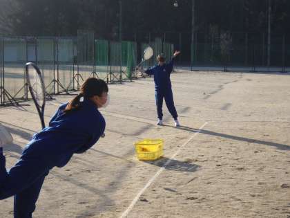 昨日より再開した平日の帰りの部活動。女子ソフトテニス部の活動の様子です。
