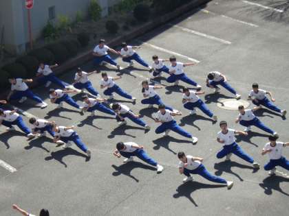 隊形を変え、お互いを鼓舞するように練習に励んでいました。明日の本番では、3年生が安心して卒業できるレベルになっていることを期待したいと思います。