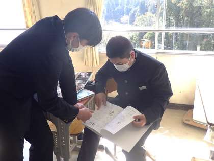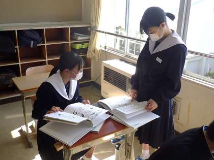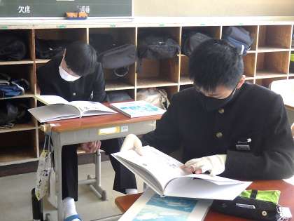 卒業式前の最後の学活となった3年生。待ちに待った卒業アルバム・文集が配付され、懐かしそうに眺めていました。