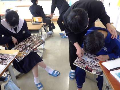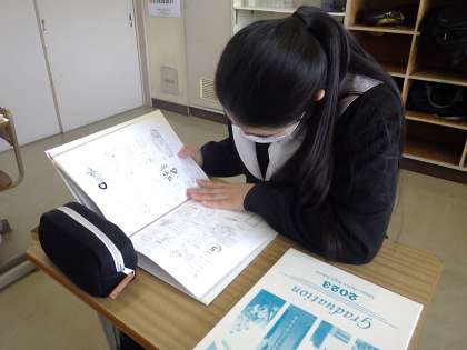 卒業式前の最後の学活となった3年生。待ちに待った卒業アルバム・文集が配付され、懐かしそうに眺めていました。
